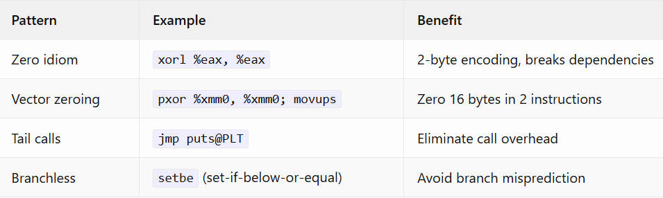 mov,add,cmp)Predictable Patterns: Repetitive stack loads/stores are easy for the CPU’s front-end to decode